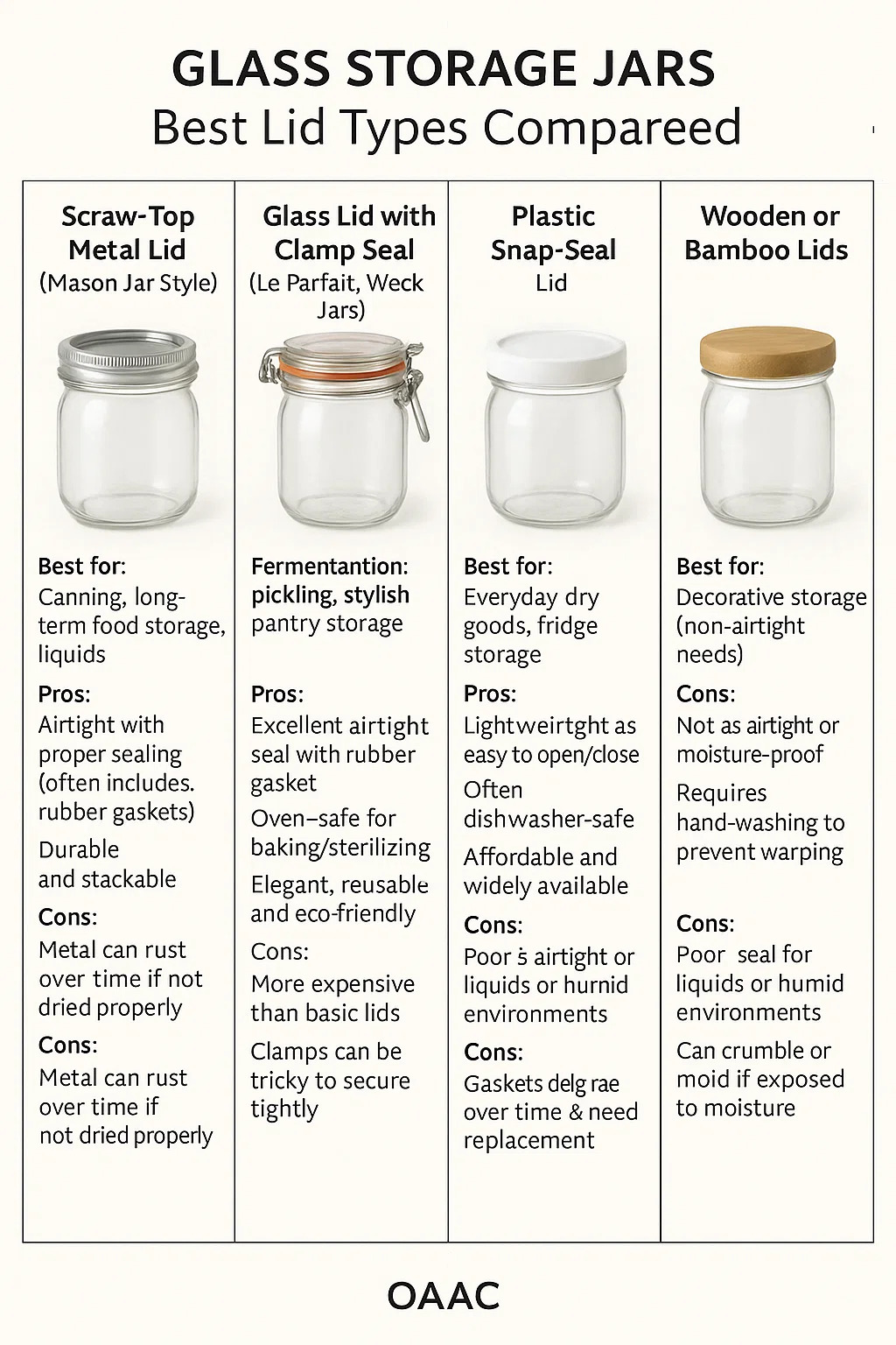 Frascos de almacenamiento de vidrio - Los mejores tipos de tapa comparados