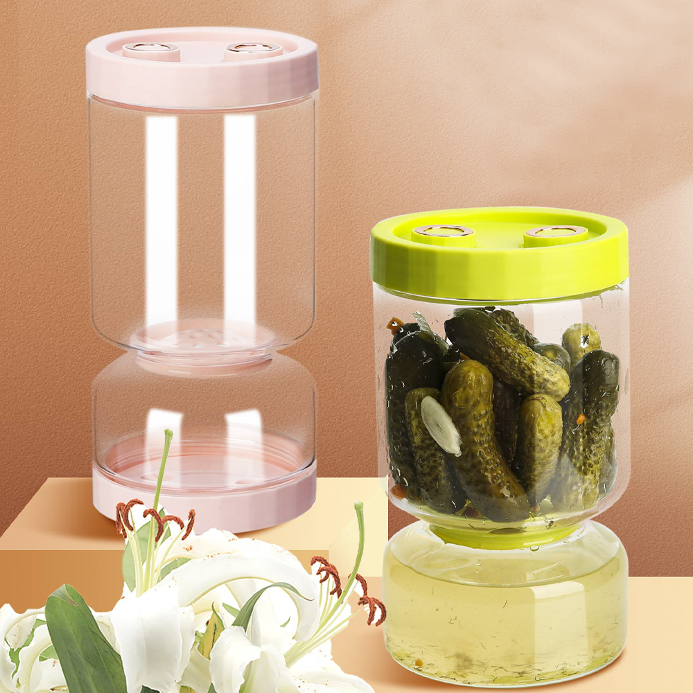 Nuestro frasco de decapado está equipado con una tapa mejorada y un anillo de sellado de alta calidad, que ofrece excelentes capacidades a prueba de fugas. Esto asegura que su refrigerador permanezca impecable mientras mantiene sus encurtidos frescos y sabrosos. El recipiente de salsa montada en el fondo tiene una capacidad amplia, lo suficientemente grande como para contener todo el jugo de encurtidos, garantizando que sus encurtidos estén secos cuando es hora de disfrutarlos. Además, la tapa está equipada con dos grabadoras de tiempo, lo que le permite rastrear con precisión la duración de la decapia.